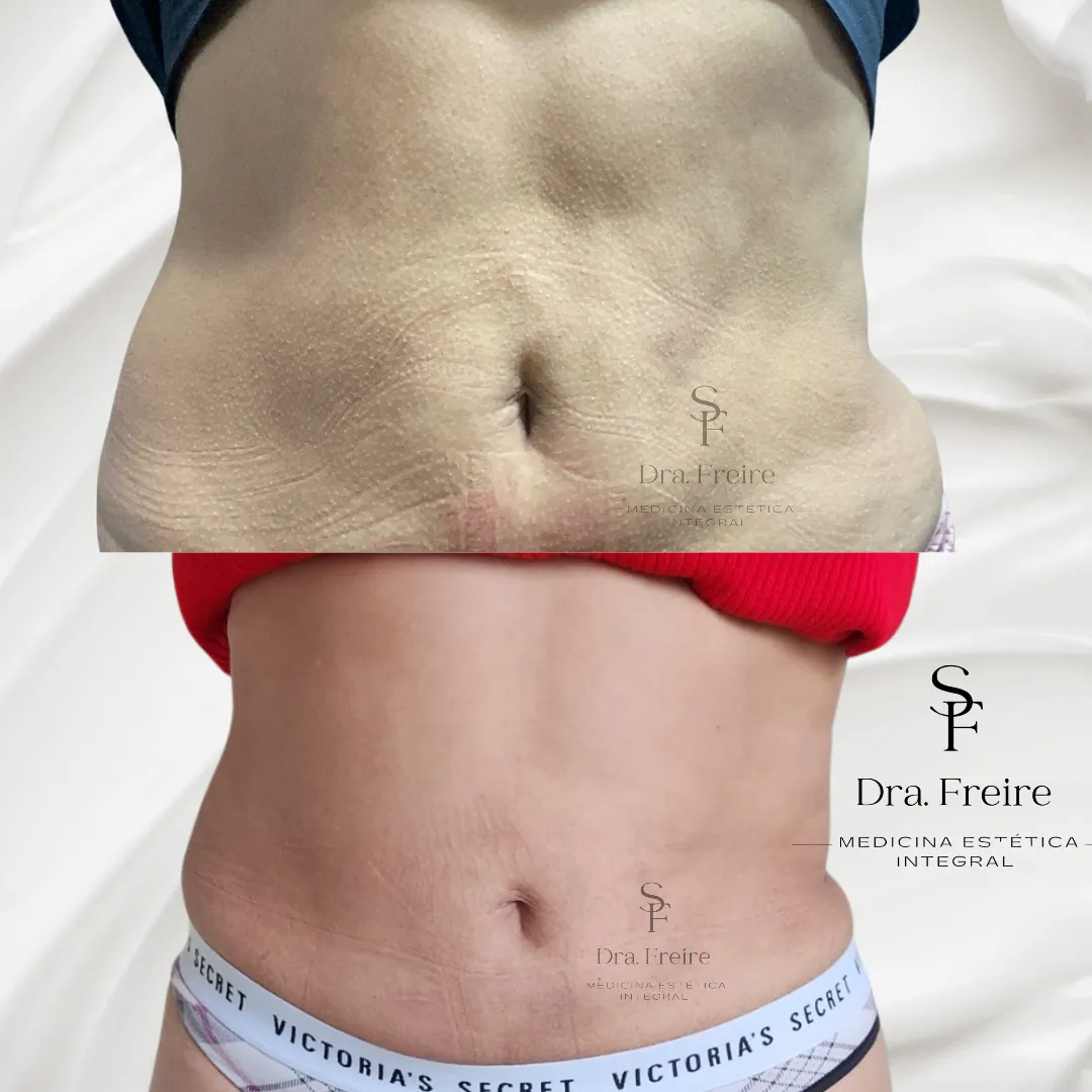 Piel más lisa y uniforme: Corrige irregularidades postquirúrgicas o causadas por acumulación de tejido fibroso.